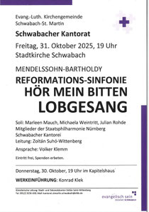 Der große Chor der Schwabacher Kantorei wurde 1928 gegründet und ist mit ca. 100 Sängerinnen und Sängern der derzeit größte Kirchen- und Konzertchor der Stadt